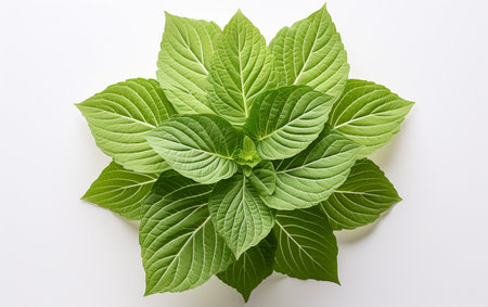 green leaves on white background.