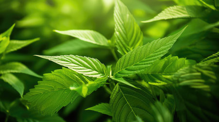 Background from fresh green textured leaves. Nature close up for your projects