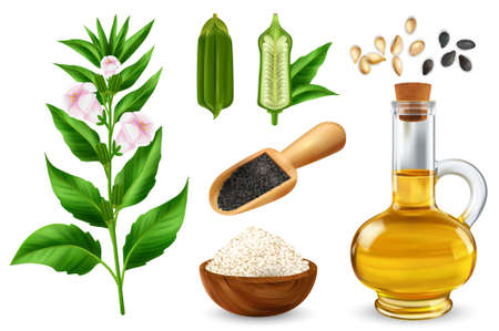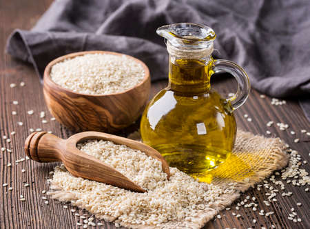 Sesame oil and sesame seeds. Edible and cosmetic oils.