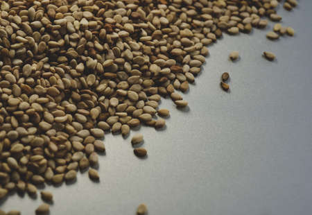 Close up view of dry sesame seeds. Natural oil-rich food