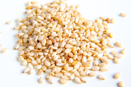 White Sesame Seeds on white background
