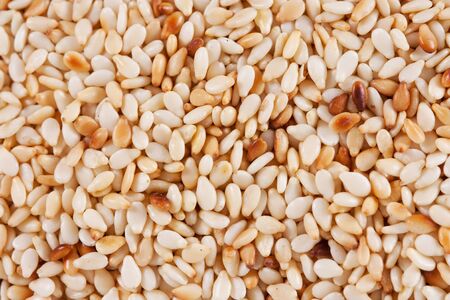 Close up of sesame seeds background. Macro shot of sesame seeds.