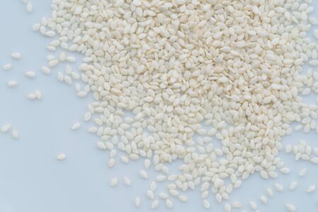 Close up of white sesame seeds food background