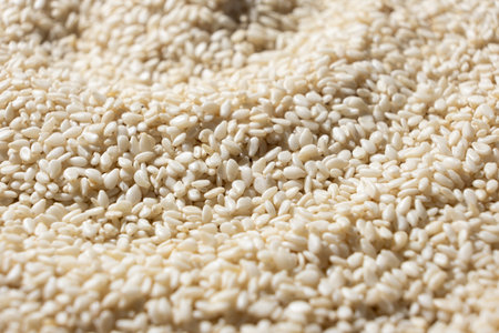 Macro kernels of white roasted sesame seeds.