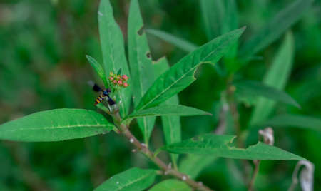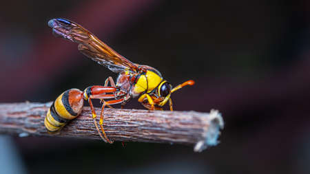 Black back mud-wasp is a common hornet in Southeast Asia. These hornets are poisonous in the bottom to be used to attack prey or invasive enemies.