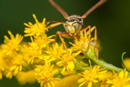 Tiger Grass Borer is looking for sweet nectar with its legs and mustache protruding into the pollen