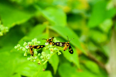 The handmaiden moth(Amata cyssea) sit on a flower