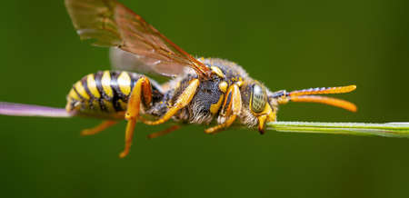 A golden digger wasp picks honey on a flower