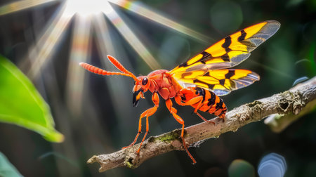 A large orange and black insect sitting on a branch, AI
