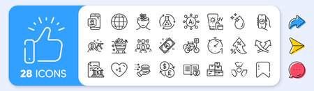 Change money, Food and Payment line icons. Interest rate, AI generate, Inflation icons. Pack of Plane, Chemistry atom, Refrigerator icon. Loyalty card, Last minute, Seo devices pictogram. Vector