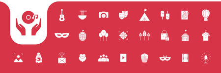The vector file includes editable solid and outline icons with a camera menu theme.
