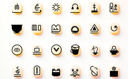 Collection of vibrant, flat-style icons featuring everyday objects and symbols.