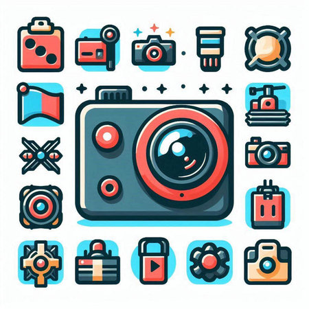 photography icon set in flat color style, unique design, expanded stroke, and editable vector with any color or size what you like