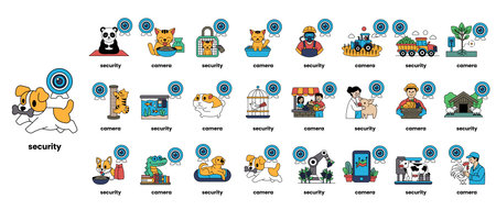 A collection of images with the word security written below them. The images include a dog, a cat, a person, a panda, a person holding a camera, a person holding a cell phone, a person holding a book