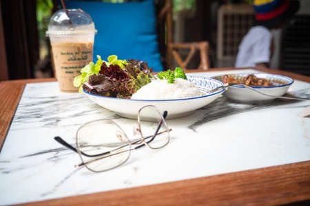 Rice with spicy curry asian food cafe drink in coffee shop food and drink