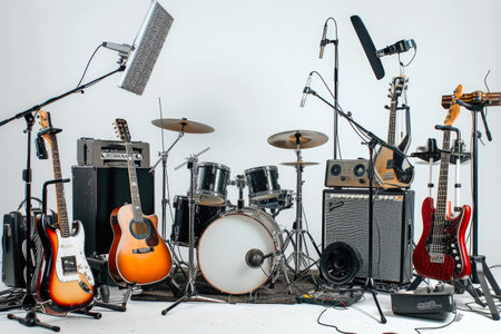This image showcases a variety of musical instruments and accessories arranged on a clean white surface, ideal for music-related creative projects and artistic concepts.