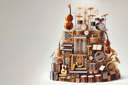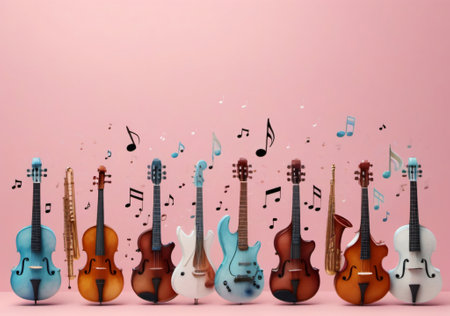 Harmonious Ensemble: Captivating Musical Instruments and Vibrant Notes for Music, Education, and Art Promotion!