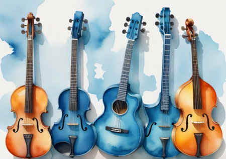 Wooden musical instruments create soulful folk music. which reflects the natural warmth.AI Generated