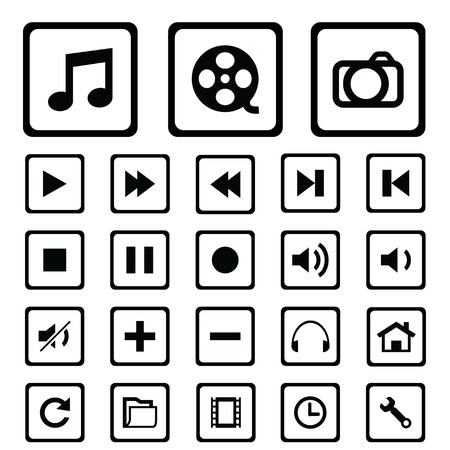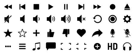 Set of simple video and music player icons for app, web or program. Popular icons for pc and mobile application