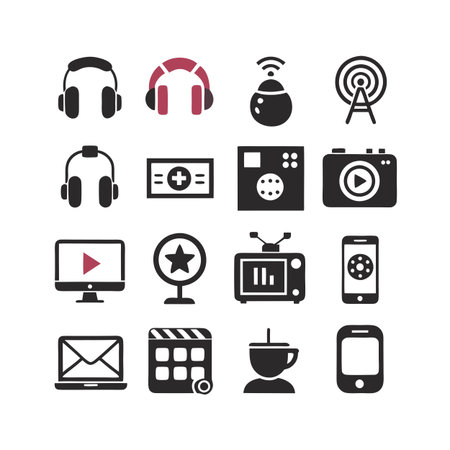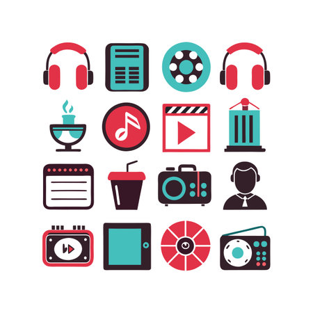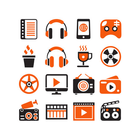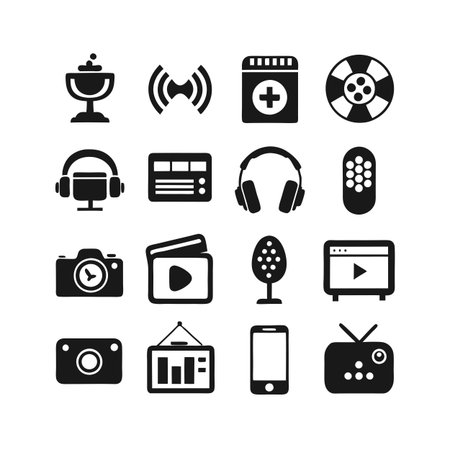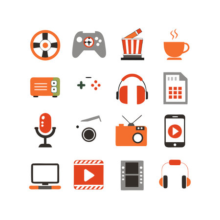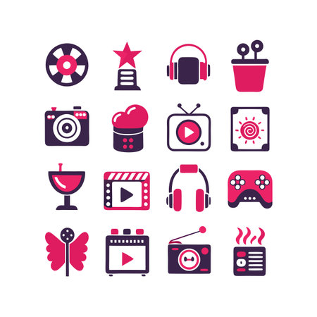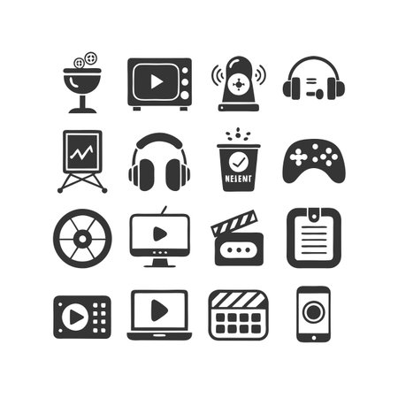 Entertainment and Media Icon Set Collection Vector for UI Documents Websites and Mobile Applications