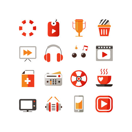 Colorful media player icons set. Multimedia, audio control, vector illustration.