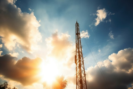 shot of telecommunications tower in sunlight, created with generative ai