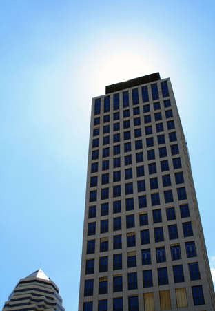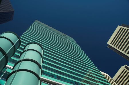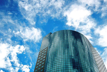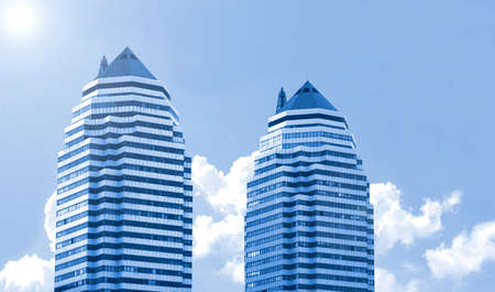 Shiny reflective business buildings and the blue sky with clouds