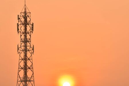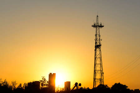 Telecommunication tower with sunset background