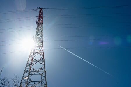 high voltage post.High-voltage tower sky background.