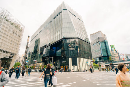 Tokyo, Japan - May 3, 2025 Pedestrians at Ginza Sony Park square. High quality photo