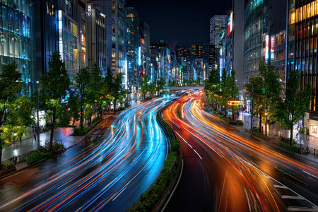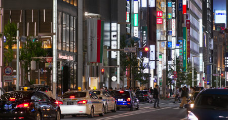 Night view of Ginza District, The district has famous brand flagship stores everywhere, offers high end retail shopping.
