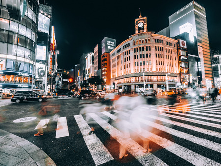 Tokyo, Japan 28 June 2019: Ginza district in Japan at night