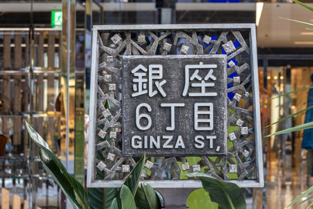 Tokyo, Japan-28 Dec 2025: Signage of Ginza 6 chome street in Tokyo. It refers to the specific district within Tokyo's upscale Ginza area, known for luxury shopping and dining