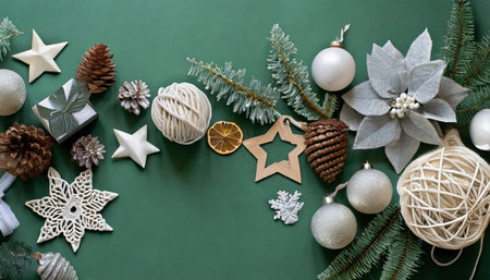 New Year decorations close-up, Christmas holiday background, realistic illustration
