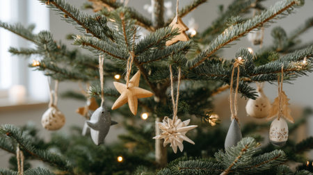 A cozy Christmas tree adorned with unique handmade ornaments and warm lights, creating a festive and inviting atmosphere perfect for holiday celebrations.