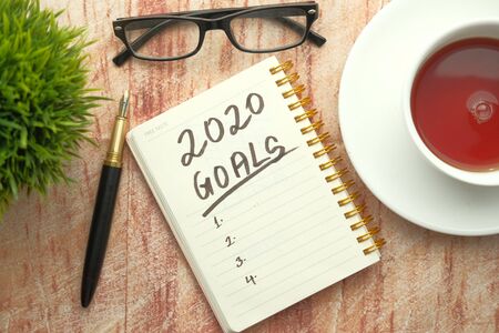 Goals 2020 - message on notebook. Targets, goal, dreams and New Years promises for the next year