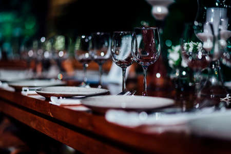 Luxury table settings for fine dining with and glassware, beautiful blurred background. For events, weddings.
