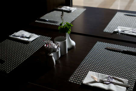 Table setting for a party or wedding reception in a restaurant.