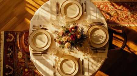 a top view photo of a table set in dining room professional advertising photography
