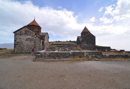 SEVANAVANK, ARMENIA - OCTOBER 14, 2016: Temples in the monastery. On the left is the Surb-Karapet Temple (built in the IV century), on the right is the Sourb-Arakelots temple (built in 874 year).
