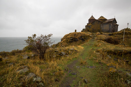 View of Hayravank in Armenia, a monastic complex located at the shore of Lake Sevan in the Gegharkunik Province of Armenia