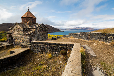 Ancient stone monastery Sevanavank on Lake Sevan, Armenia