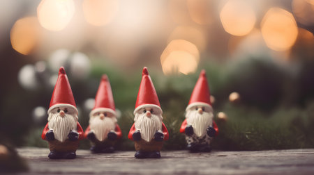 Christmas gnomes on wooden background. Christmas decoration. Happy New Year.