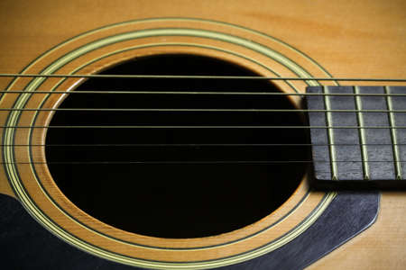 Acoustic guitar strings on white background close up top view with empty space for you text