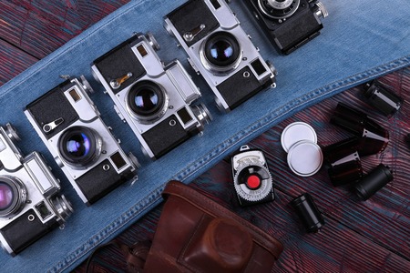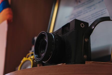 Collectibles Classic and old film camera. retro technology. vintage color tone.