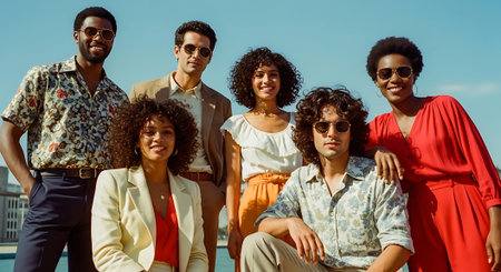 Nostalgic vibes: people embracing the eclectic fashion of the 1970s, a journey back in time through groovy styles, disco glamour, and free-spirited bohemian expressions