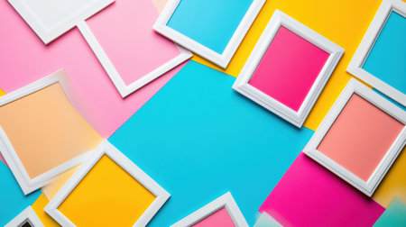 White frames are placed randomly on a vibrant backdrop, inviting creative expressions and the capture of treasured moments with an array of colors.