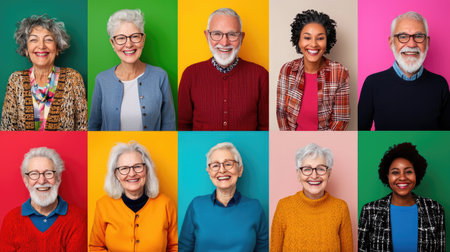 A series of headshots showing happy, diverse senior citizens, perfect for illustrating positive aging and community life in retirement settings.