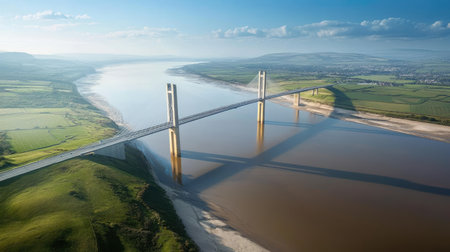 The captivating Severn Bridge between England and Wales, with room for text in the river