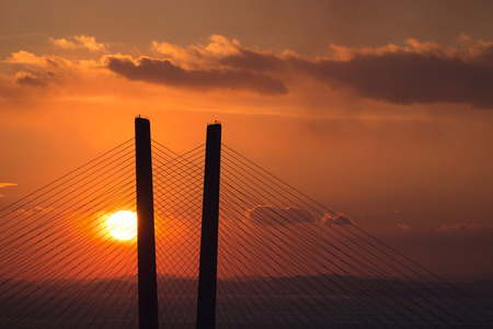 Cable-stayed bridge at sunset, Lisbon, Portugal.